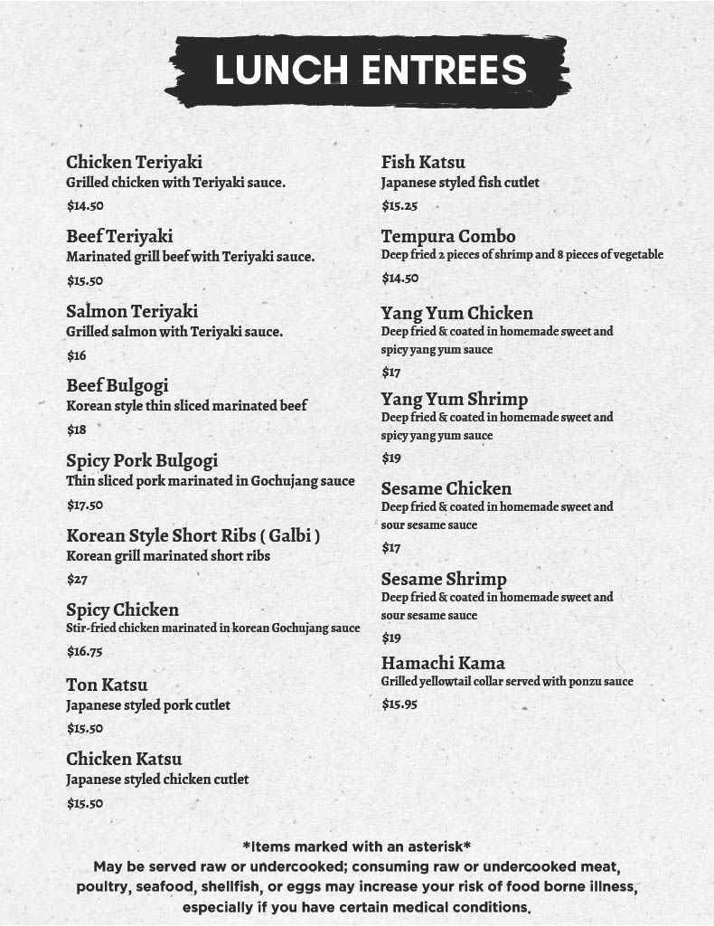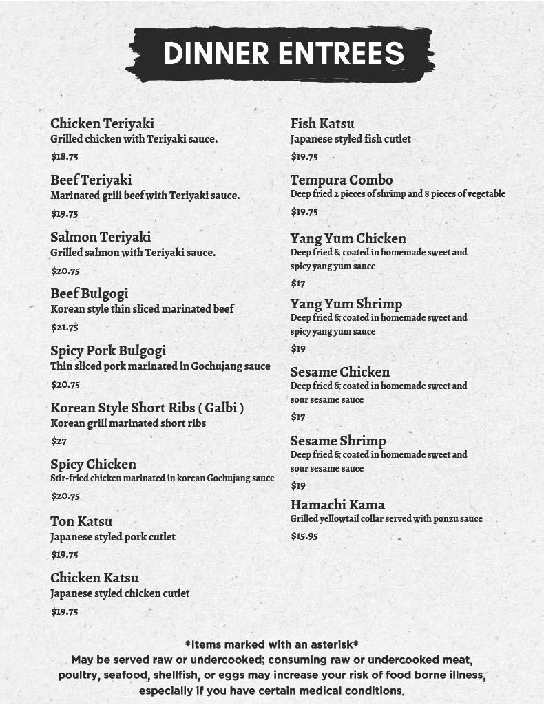 Dine In Menu